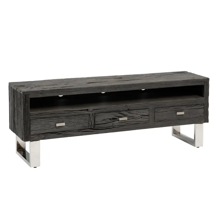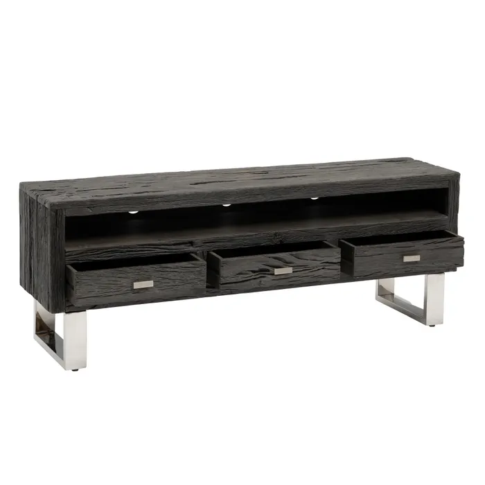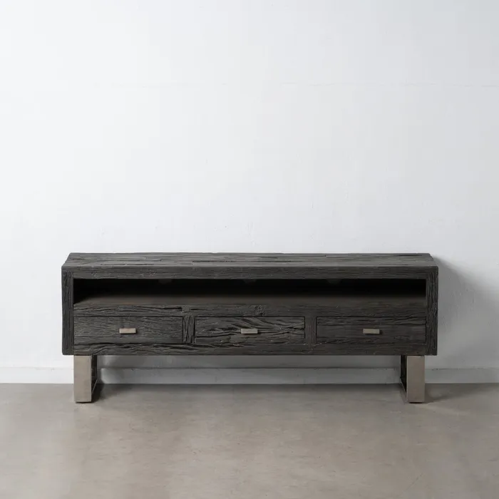 MUEBLE TV NEGRO MADERA / ACERO SALÓN 160 X 40 X 59 CM