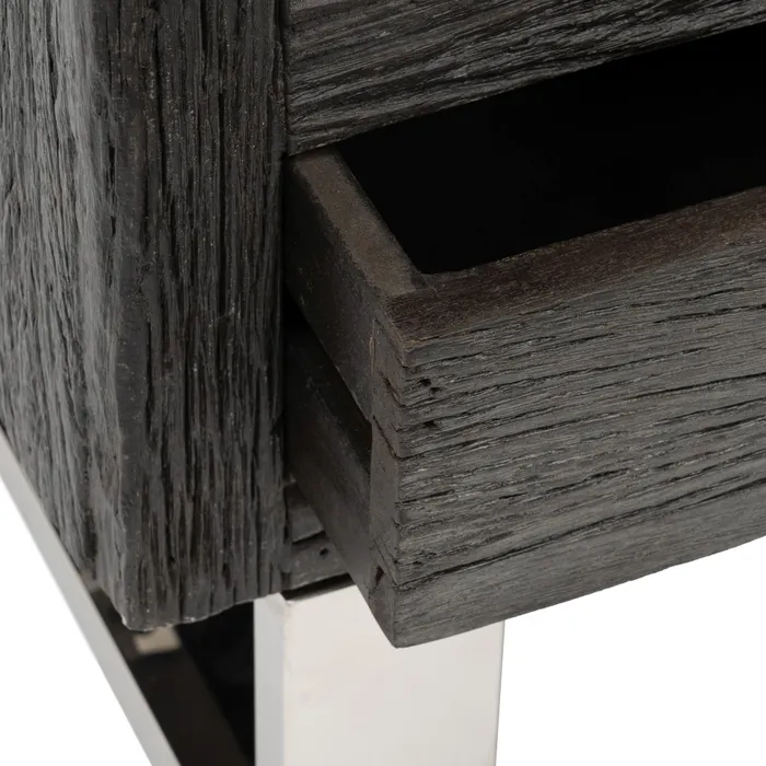 Material: madera, acero inoxidable. Cajones: 46x11cm. Altura patas: 21cm. Medida hueco: 150x11cm.