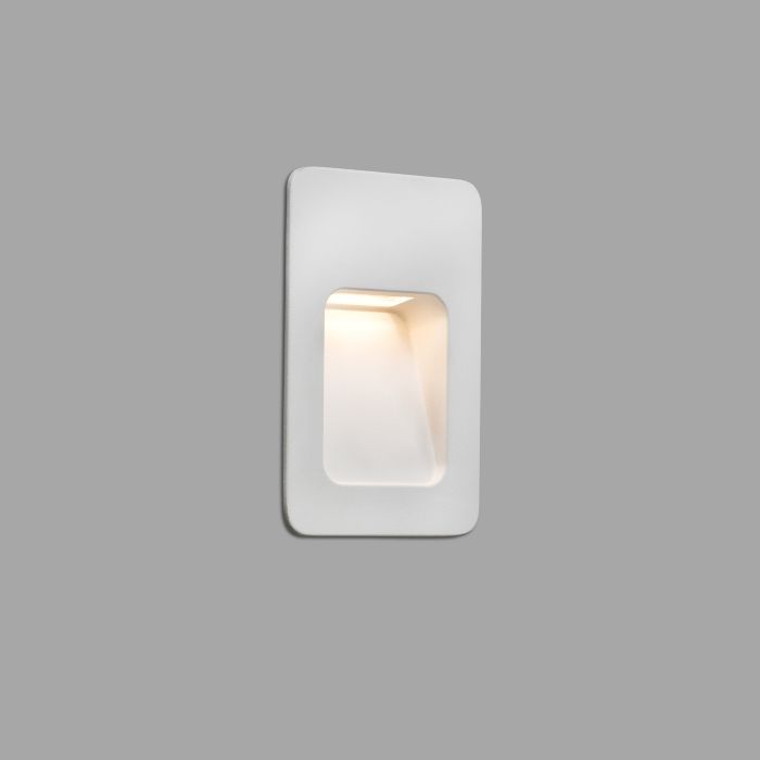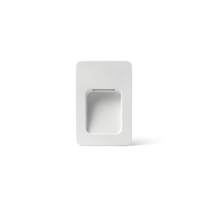Empotrable blanco LED para iluminar jardines y terrazas fabricado en aluminio y policarbonato. Esta lámpara de pared es ideal para la iluminación exterior de señalización.