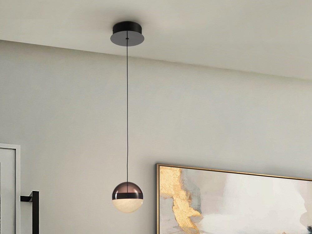 Lámpara LED de Schuller, fabricada en metal con elegante acabado negro. Su tulipa de Ø12 cm combina policarbonato smoke y cristal marmoleado, creando un efecto visual sofisticado. Incluye un aro decorativo en cromo negro, ideal para aportar un toque moderno y distintivo a cualquier espacio. Una pieza de diseño perfecta para iluminar con estilo.