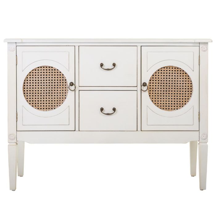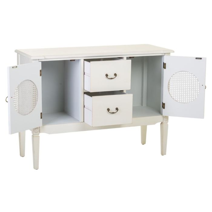 ¡Mira este maravilloso recibidor de madera con dos cajones y dos puertas con rejillas! Esta hermosa pieza de 106x40x78h cm te encantara por su versatilidad y por su disenyo moderno. Es una excelente opción para darle un toque único a tu sala de estar. ¡No esperes mas para darle un toque de estilo a tu hogar.