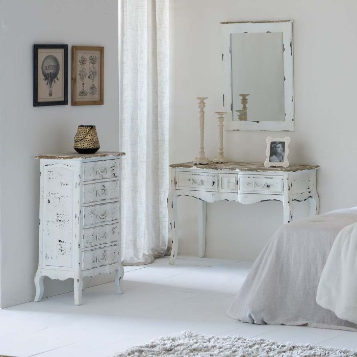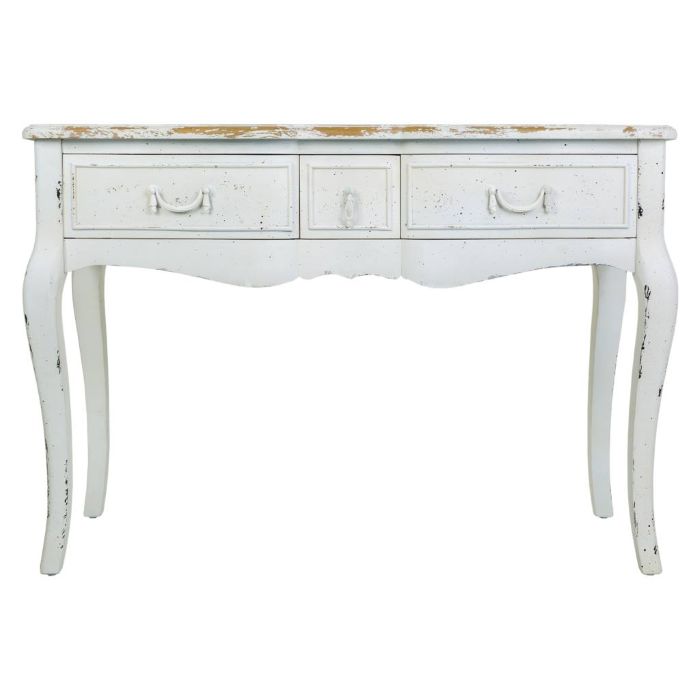 Recibidor antiguo de madera lacada en blanco con 3 cajones.