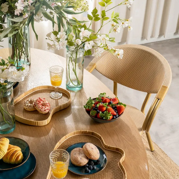 Material: aluminio, textileno. Altura asiento: 43cm. Ancho asiento: 40cm. Profundidad asiento: 42cm. Altura respaldo: 43cm. Altura reposabrazos: 28cm (71cm desde el suelo). Apilable.