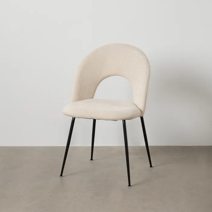 Material: Poliéster-DM-METAL Relleno:foam Densidad del relleno: 22kg/m3. Material tablero del asiento: DM. Material de las patas: Hierro Altura del asiento:47cm Altura de las patas:43cm. Altura del respaldo:37cm. Medidas del asiento:47x45cm. Distancia entre las patas:48cm. Peso máximo soportado:120kgs. No apilable. No necesita montaje. Cumple normativa EN16139:2013 (Catering).