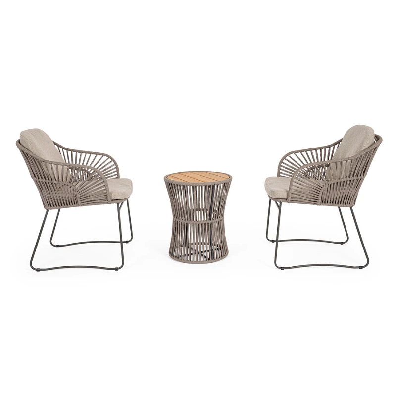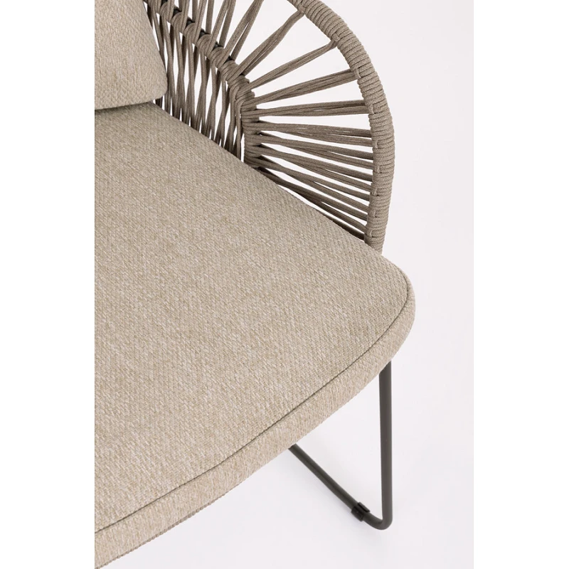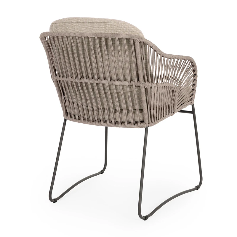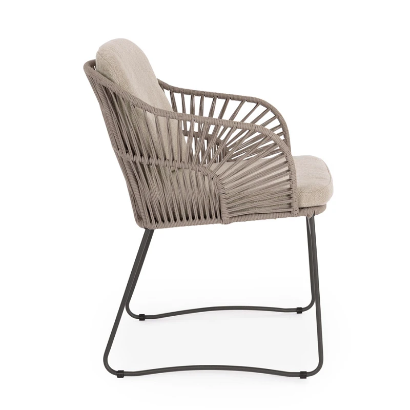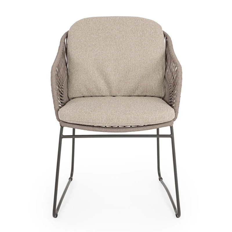 ESTRUCTURA DE ACERO INOXIDABLE (201). TRENZADO PARA EXTERIOR DE CUERDA (POLIPROPILENO). COJINES DESENFUNDABLES CON TEJIDO REPELENTE AL AGUA SUNPROOF OLEFIN (100% POLIPROPILENO). PARA EVITAR LA CORROSIÓN, RECOMENDAMOS NO COLOCAR MUEBLES CON ESTRUCTURA DE ACERO INOXIDABLE 201 EN LUGARES CON ALTA SALINIDAD (AMBIENTES MARINOS).