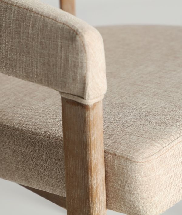 La Silla Kai de KODU reinterpreta la comodidad desde una estética contemporánea y equilibrada. Su estructura en madera de olmo en tono marrón claro aporta calidez y solidez, mientras que el tapizado en lino beige suaviza el conjunto y refuerza su carácter atemporal. Una pieza versátil, pensada para integrarse con naturalidad en proyectos residenciales y contract que buscan confort, diseño y coherencia material.