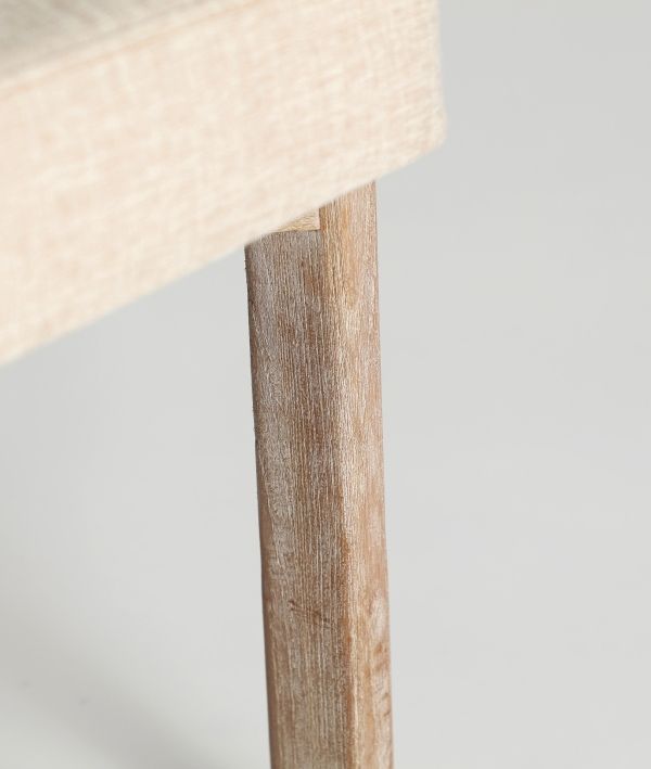 MADERA DE OLMO EN COLOR MARRÓN CLARO, COMBINADO CON LINO EN COLOR BEIGE