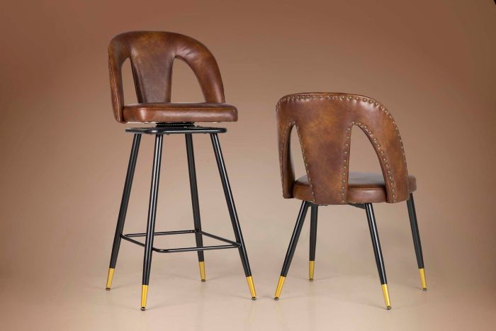 SILLA TACHUELAS PU MARRON STOWE 49x54x82 CM