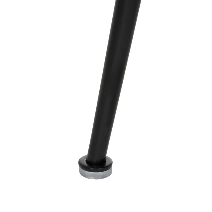 Material: Poliéster-DM-METAL Relleno:foam Densidad del relleno: 22kg/m3. Material tablero del asiento: DM. Material de las patas: Hierro Altura del asiento:47cm Altura de las patas:43cm. Altura del respaldo:37cm. Medidas del asiento:47x45cm. Distancia entre las patas:48cm. Peso máximo soportado:120kgs. No apilable. No necesita montaje. Cumple normativa EN16139:2013 (Catering).