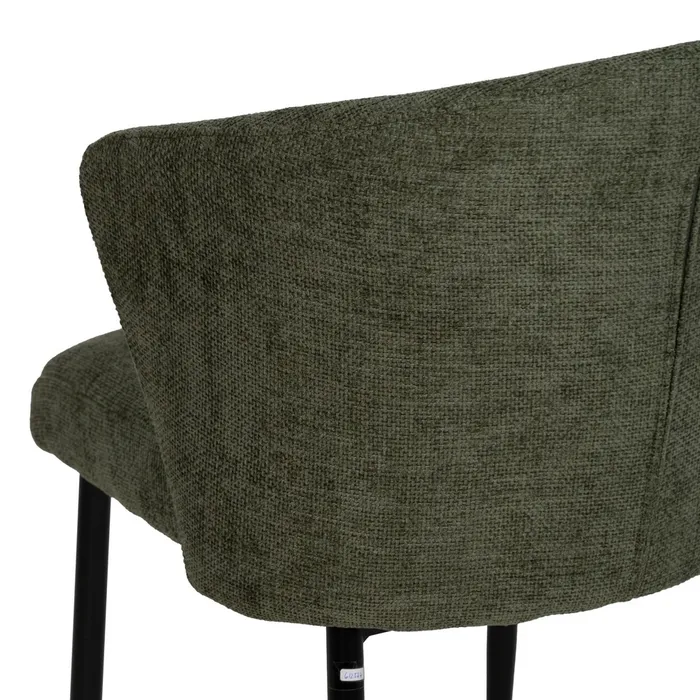 Tejido: Poliéster. Relleno:foam Densidad del relleno: 28kg/m3. Material de las patas: Hierro Altura del asiento:47cm Altura de las patas:42cm. Altura del respaldo: 33 cm. Medidas del asiento: cm. Distancia entre las patas: 60 cm. Peso máximo soportado:140kgs. No apilable. No necesita montaje. Cumple normativa EN16139:2013 (Catering).