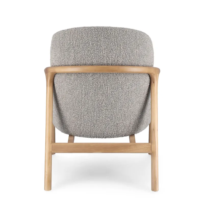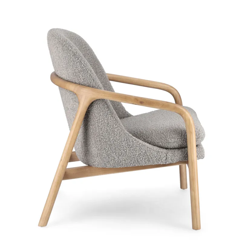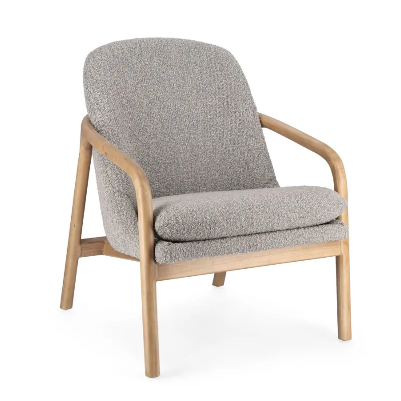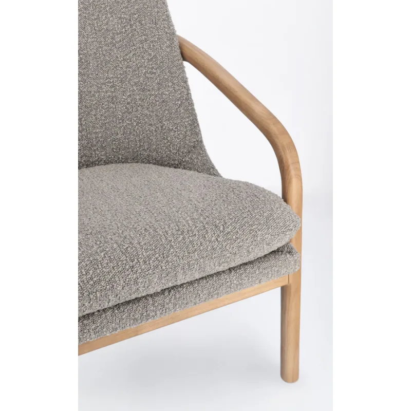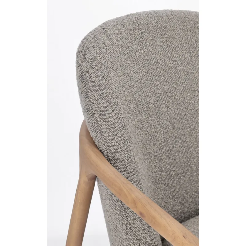 ESTRUCTURA DE RUBBERWOOD. ASIENTO DE MADERA DE PINO Y CONTRACHAPADO. REVESTIMIENTO DE POLIÉSTER EFECTO BOUCLÉ. DENSIDAD RELLENO DE ESPUMA DE POLIURETANO 24KG/M3. COJÍN DEL ASIENTO DESENFUNDABLE.