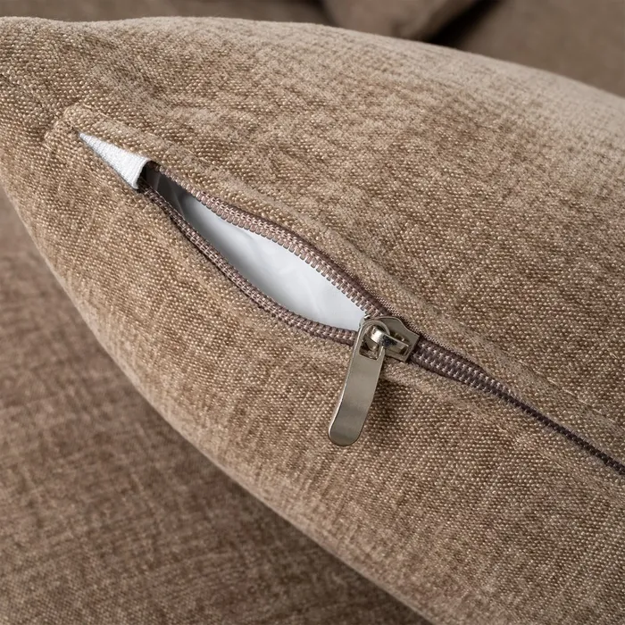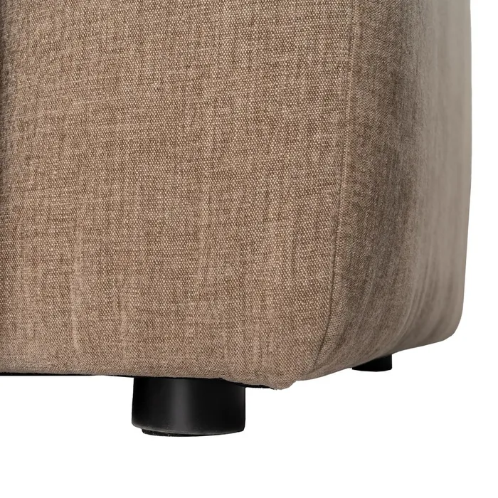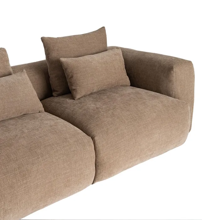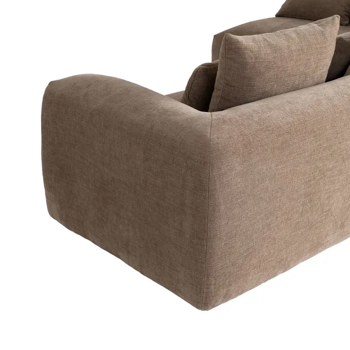Material: 97% poliéster – 3% lino. Patas: madera de caucho Asiento y trasera: Foam 32kgr./m3 y pluma. Respaldo: fibra y pluma. Medida cojines: respaldo 60×50 – decoración 57x33cm. Cojines desenfundables con cremallera. Medida sofá 3 plazas: 1.96×1.05x81cm. Medida chaise: 1.16×2.20x81cm. Altura asiento: 40cm. Altura reposabrazos desde el suelo: 60cm. Cumple normativa: EN12520:2025