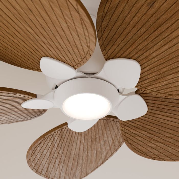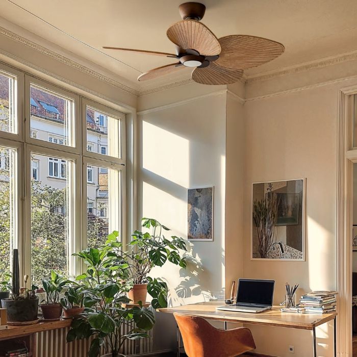 El ventilador de techo ALMA equilibra frescura y diseño, ideal para interiores y exteriores techados (IP44). Con palas de madera de pino FSC en forma de palma y tonos naturales, evoca el estilo relajado de Ibiza. Disponible en dos tamaños (100 cm y 132 cm), opción de 3 o 5 palas y acabados en marrón óxido, latón o blanco, se adapta a cualquier ambiente, desde lo rústico hasta lo moderno. Además, permite elegir entre versiones con luz integrada o sin luz, ofreciendo versatilidad y personalización. ALMA transforma tu hogar en un oasis de frescura, estilo y confort.