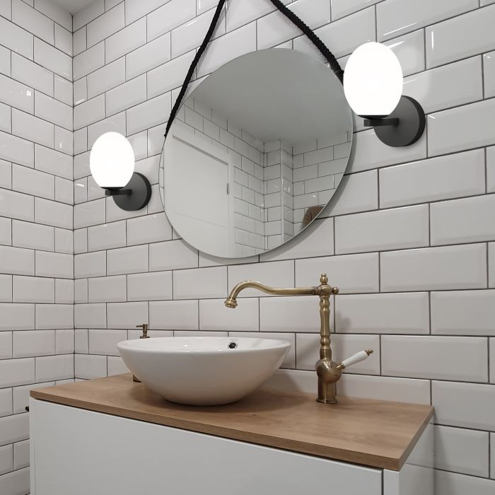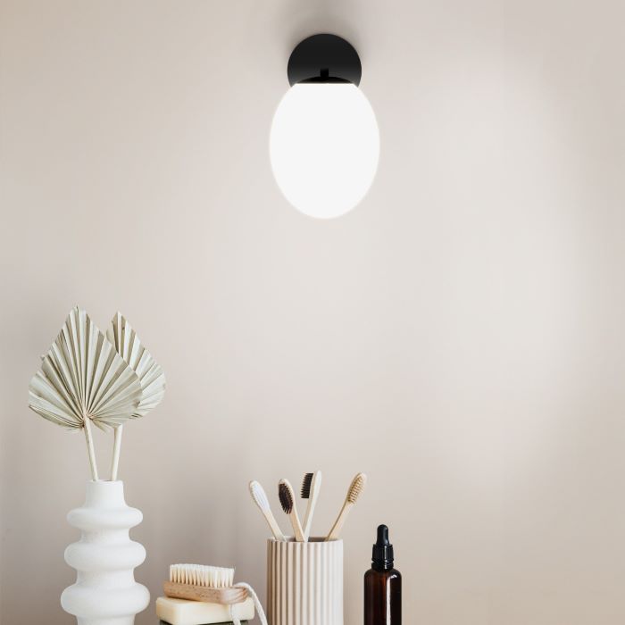 Amur es un aplique de bola oval opalizada que se posa delicadamente sobre un fínísimo eje de metal. La concepción de su diseño permite disponer esta pieza con el punto de luz hacia arriba o hacia abajo, en función de nuestro gusto. Amur es la forma más elegante de completar la iluminación de nuestro cuarto de baño colocando una pieza a cada lado del espejo. Acabado negro arenado, base finamente trabajada y un anclaje con discretos tornillos allen. Funciona con bombillas G9. Consigue el glamur con Amur. *Este producto es ideal para baños por su índice de protección frente a la humedad pero puede usarse en cualquier estancia.