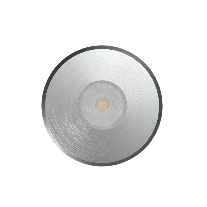 Empotrable de suelo para exterior COBSOIL LED 1,5W, acabado en acero 4000K y ángulo 25°. Fabricado en acero inoxidable 316 y aluminio, tiene una alta resistencia a los golpes de IK08. Es ideal para balizar un camino o bañar una pared en jardines, fincas, y cualquier zona de paso a la intemperie. Incluye la caja para empotrar. Disponible en diferentes ángulos de apertura (15° – 25° – 40° – OPAL) y en diferentes temperaturas de color ( 2700K y 4000K)