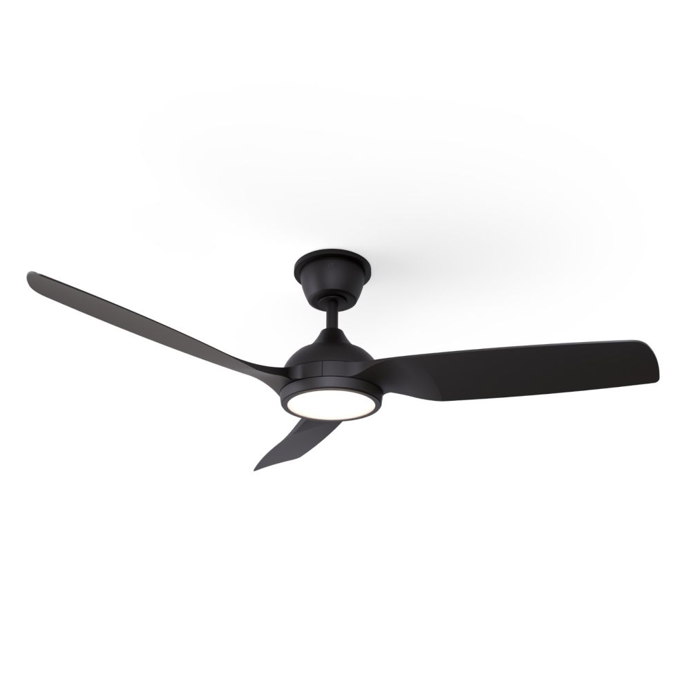 Ventilador de techo DANA en negro mate que tiene IP66, por lo que puede mojarse o soportar lluvia, e instalarse en plena intemperie. Trae incorporada una placa de luz LED con temperatura de color, fría, cálida y natural, e intensidad regulable. Tiene un diseño minimalista y moderNO que encaja en cualquier estilo decorativo. Con sus 132cm de diámetro, Motor DC 2.0 y sus 6 velocidades, es capaz de mantener un flujo de aire óptimo con el máximo ahorro energético. Incluye función cool-warm para utilizar tu ventilador todo el año, temporizador y naturwind.