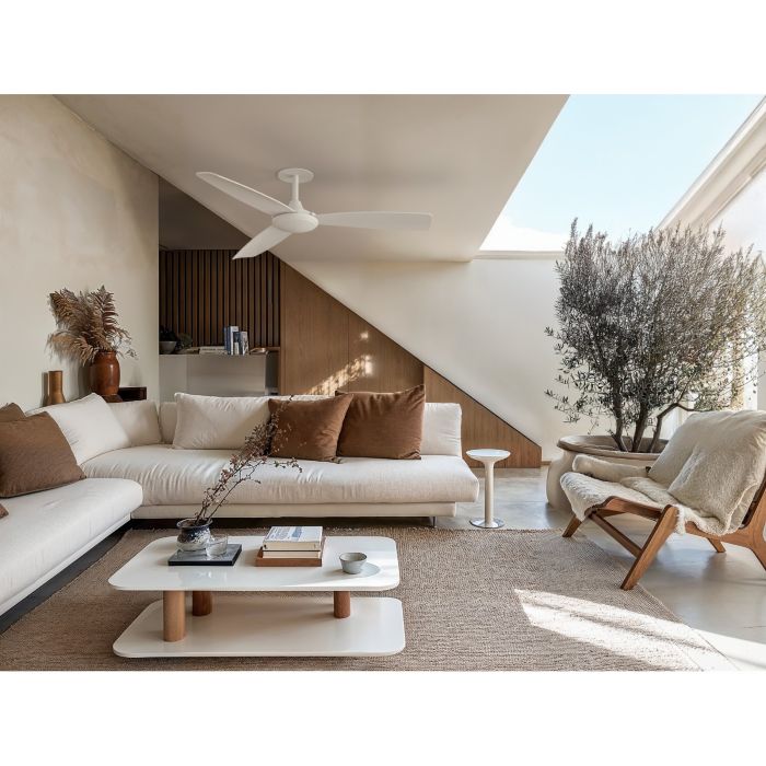 El ventilador de techo LIA en blanco, con su estética minimalista y sofisticada, dará un toque de elegancia a cualquier habitación con un espacio amplio. Con su motor DC 2.0 más eficiente, silencioso y resistente, junto a su temporizador y sus 6 velocidades, es capaz de ofrecer un flujo de aire caudaloso con un mínimo consumo enérgetico, máximo control de ahorro y sin ningún tipo de ruido.
