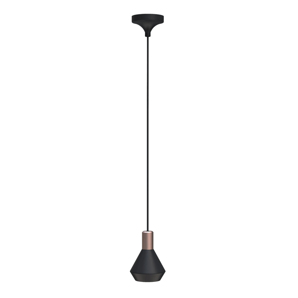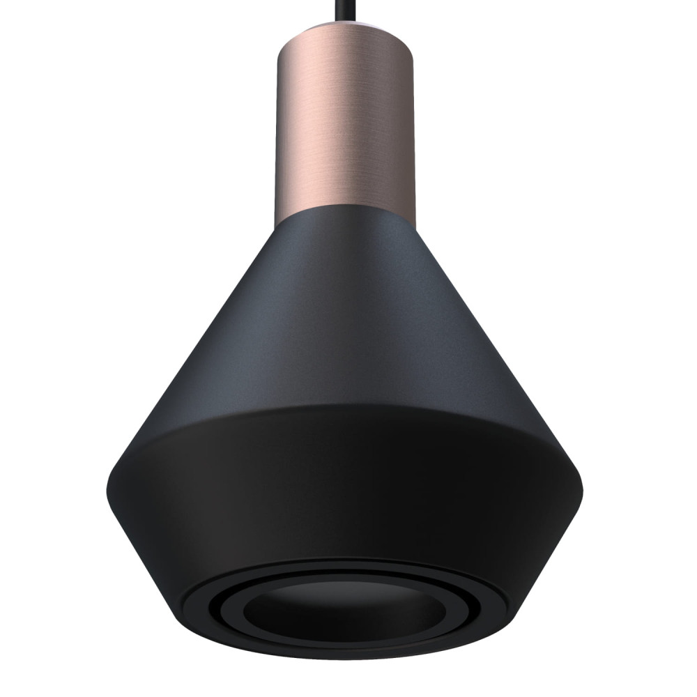 Lámpara de techo con luz focal en acabado negro arenado. Esta pieza se adaptará a cualquier estilo decorativo gracias a su elegancia y diseño minimalista. LUA destaca por su acabado de gran calidad y su gran versatilidad, ya que incluye un embellecedor extra (en acabado oro rosa) para personalizar la lámpara a nuestro gusto y en función de la estancia. Su efical luz focal creará ambientes acogedores y modernos de los que tus invitados no se querrán marchar. Tiene cable de nailon negro y funciona con bombilla GU10.