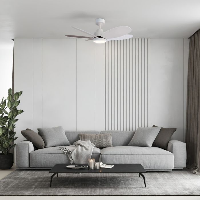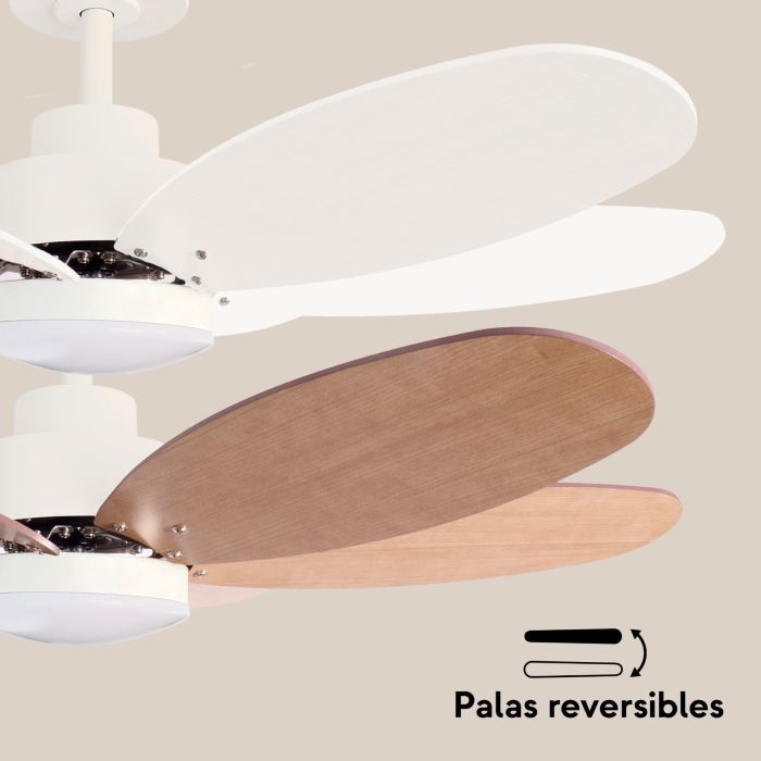 Ventilador de 101 cm blanco mate con 6 aspas reversibles y luz LED CCT.