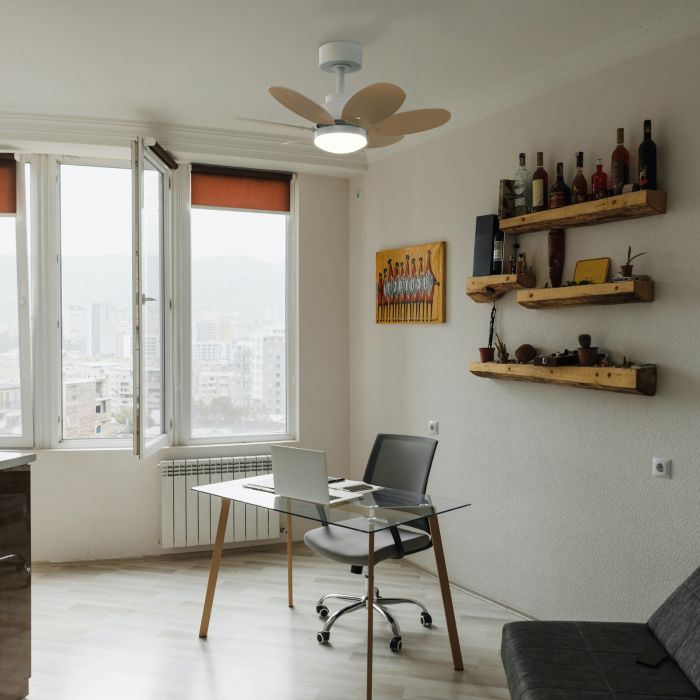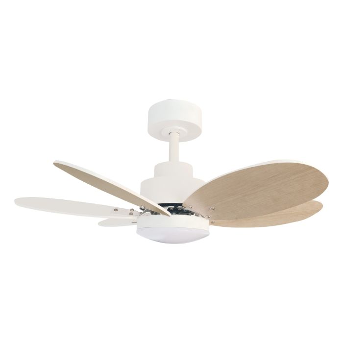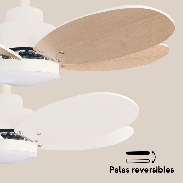 Ventilador de 75 cm blanco mate con 6 aspas reversibles y luz LED CCT.