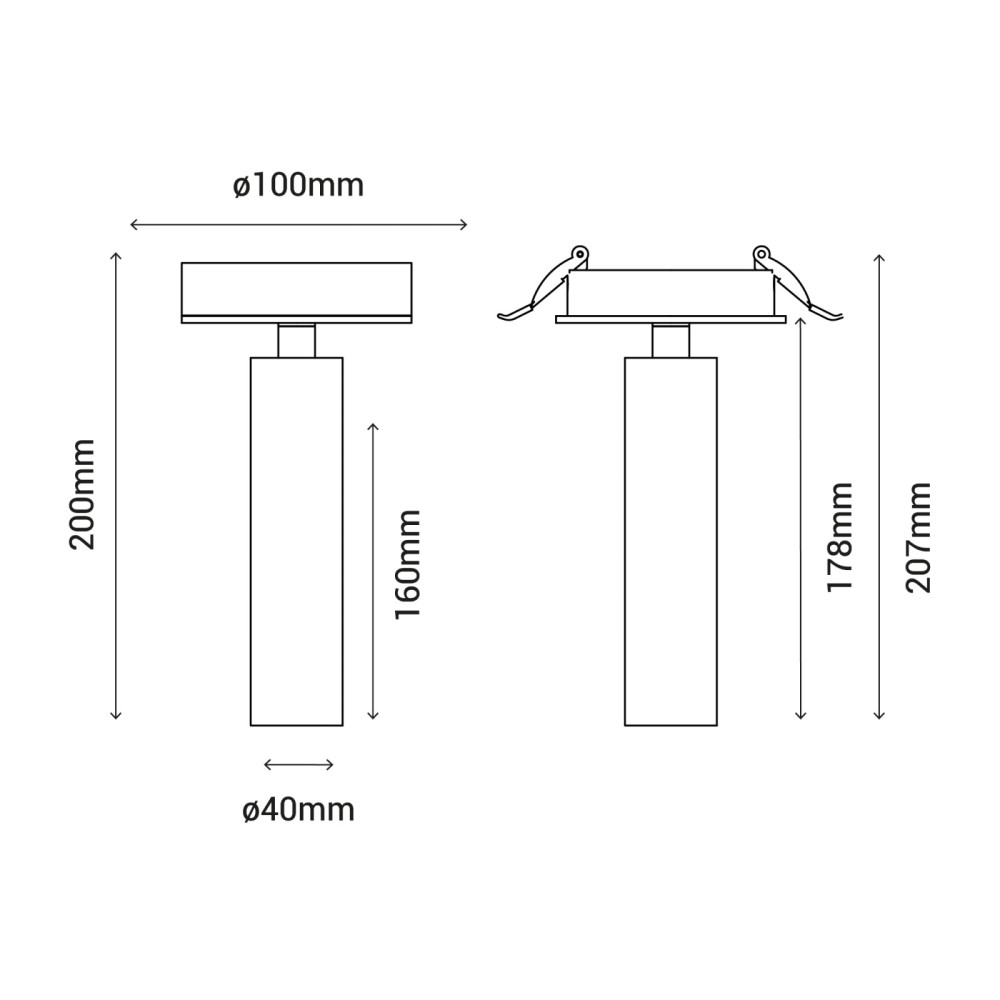 Foco acabado en blanco mate RAL9010 con instalación empotrada o de superficie. 1 x Mini GU10 (no incl.)