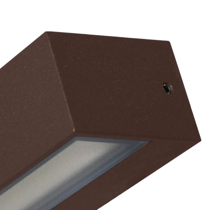 Aplique de alta eficiencia en acabado acero cortén y diseño moderno con forma rectangular con solo 45mm de grosor. Emite luz cálida hacia arriba y abajo creando un efecto en la pared muy atractivo. Gracias a su grado de protección IP65 permite su instalación en un gran número de zonas de exterior. Disponible en diferentes acabados y temeraturas de color.