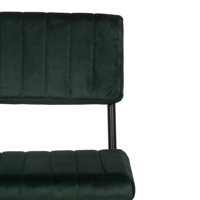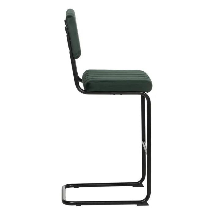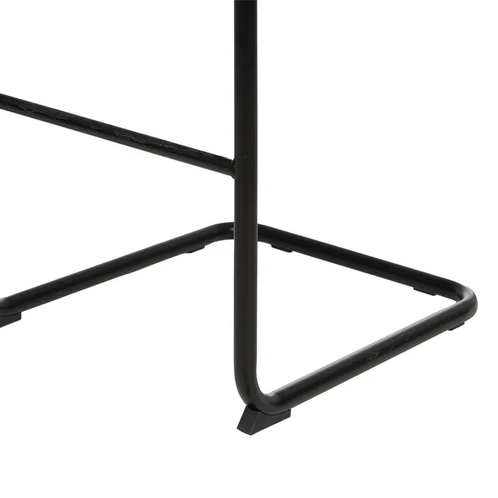 Material: Poliéster-DM-METAL Relleno:foam Densidad del relleno: 22kg/m3. Material tablero del asiento: DM. Material de las patas: Hierro Altura del asiento:76cm Altura de las patas:70cm. Altura travesaño:31cm Altura del respaldo desde el asiento:40cm. Medidas del asiento:45x40x7cm Medidas del respaldo:44x27x5cm Distancia entre las patas:40cm. Peso máximo soportado:120kgs. No apilable. No necesita montaje. Cumple normativa EN16139:2013 (Catering).