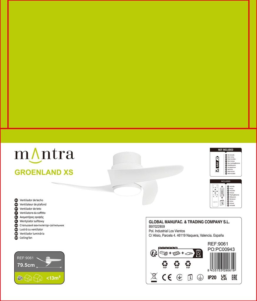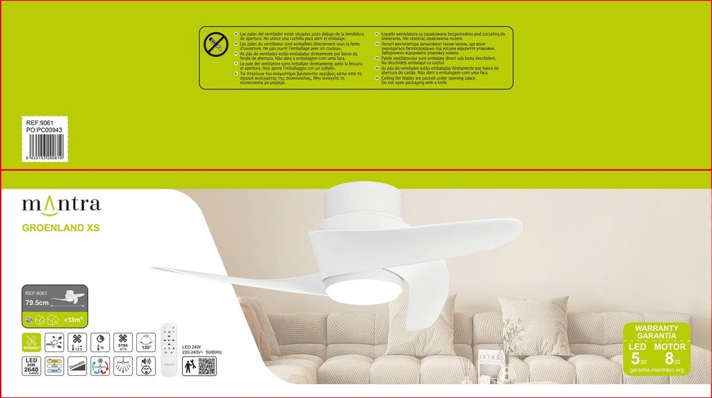 VENTILADOR DC LED 24W BLANCO LUZ REGULABLE GROENLAND XS