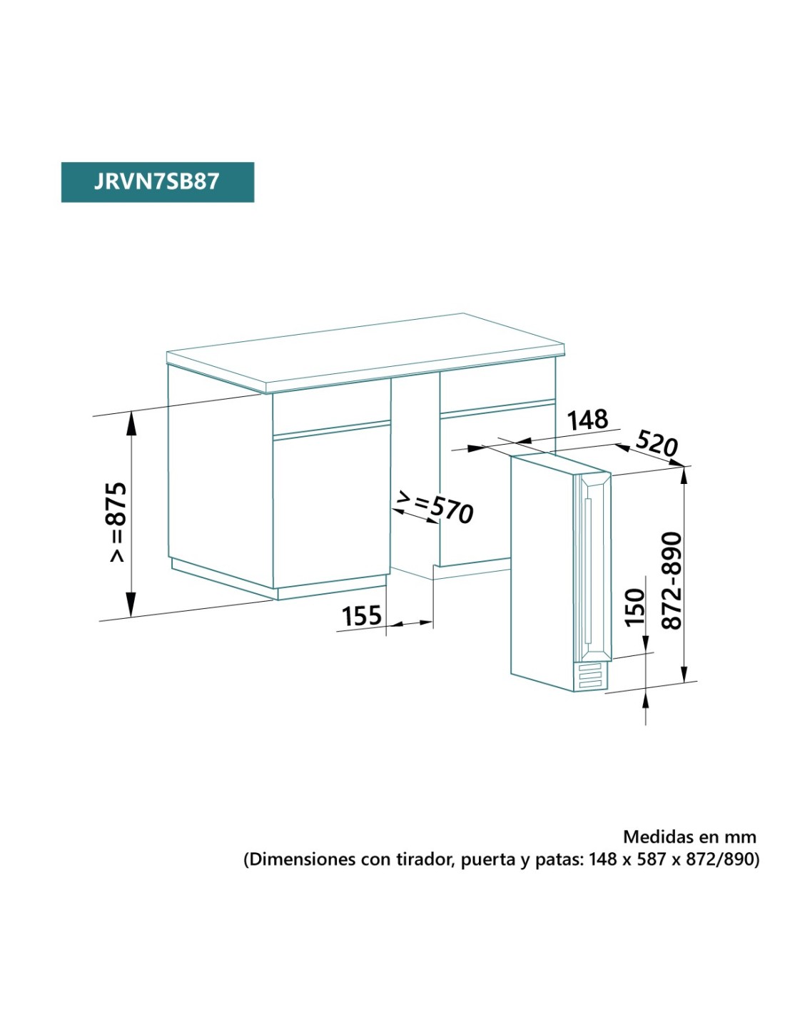 Dimensiones con tirador (AlxAnxFon cm): 87,5-89×14,8×58,7